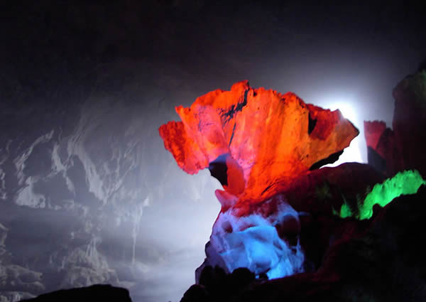 似萬(wàn)樹千花凡塵不染,千姿百態(tài),栩栩如生,溶洞景觀巖石無(wú)論大小,處處雄風(fēng)大氣,陽(yáng)剛十足,赤壁倒懸,險(xiǎn)峻無(wú)比,造型奇絕,特色鮮明。洞中有洞,處處晶瑩剔透,一脈柔情,石獅、石鶴、石樹、石花、石鐘、石幔、石田,有的象“水底龍宮”;有的似“瑤池果樹”、“鯤鵬展翅”、“巨蟒捕食”,有的則如“觀音坐蓮”、“玉女垂幃”,可謂是奇景芬芳,別具一格。巖溶精品,要數(shù)湛稱世界奇寶的“水下晶錐”,1988年3月中美聯(lián)合溶巖考察隊(duì)一行12人來(lái)萬(wàn)華巖進(jìn)行為期一周的考察后,贈(zèng)錦旗一面,贊美萬(wàn)華巖是“世界上最美麗的洞穴之一,她可以與世界上所有漂亮的溶洞媲美!本哂蓄H高的巖溶科研、旅游觀光、洞穴探險(xiǎn)價(jià)值。但蓋世絕景是2000年10月中國(guó)科學(xué)院地理研究所宋教授一行來(lái)萬(wàn)華考察,發(fā)現(xiàn)的“石蛋生筍”,目前世界上屬首次發(fā)現(xiàn),其價(jià)值是不可估量的。