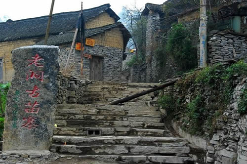 這里是一座石頭城,呈九宮八卦布局,設(shè)計(jì)精巧,而且攻防體系和排水體系都相當(dāng)完整,這里曾有著富足而輝煌的歷史。直到民國(guó)25年,烏龍山土匪1000多人攻打老洞苗寨12天12夜,燒掉老洞古建筑群2座,搶走銀光洋一萬余塊,銅元一萬多斤,銀錠300多斤,從此以后老洞苗寨沒落深山,步入貧窮而漸漸地不為人知。