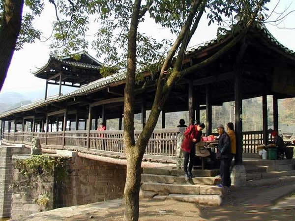 | 賀龍橋原名永安橋,是賀龍曾祖父賀廷宰首倡修建的,它是一座由石墩、木梁、騎廊組成的風(fēng)雨橋。賀廷宰熱心公益事業(yè),見玉泉河“奔流湍急,道路為!,行人十分不便,于是決定修橋。由于他只是一個教私塾的文人,修橋工程艱巨,個人經(jīng)費有限,“至斥腴畝以償其負(fù)”。后來,賀龍的祖父賀良仕子代父勞,費盡心血,終于在1915年修建成功,深獲遠(yuǎn)近鄉(xiāng)鄰稱頌。