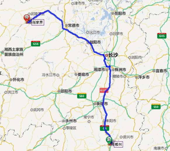 郴州市到張家界自駕車(chē)路線(xiàn)圖